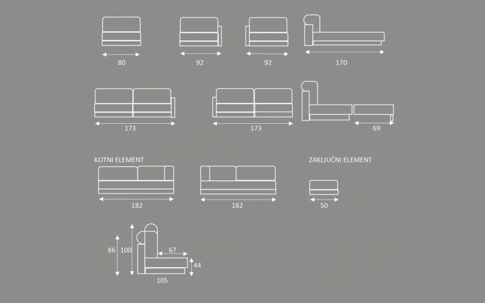 Garnitura primerna za vsak prostor. Ravnih linij z dvižnimi vzglavniki. Detajl sedežne je rokonaslon, ki sedežni da eleganco.