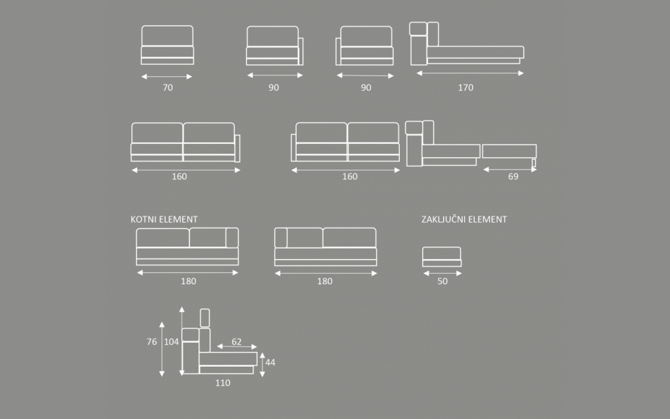 Sedežna garnitura je dvojno vzmetena z dvižnimi vzglavniki. Sedež ima globok kar nam omogoča tudi prijetno ležanje.