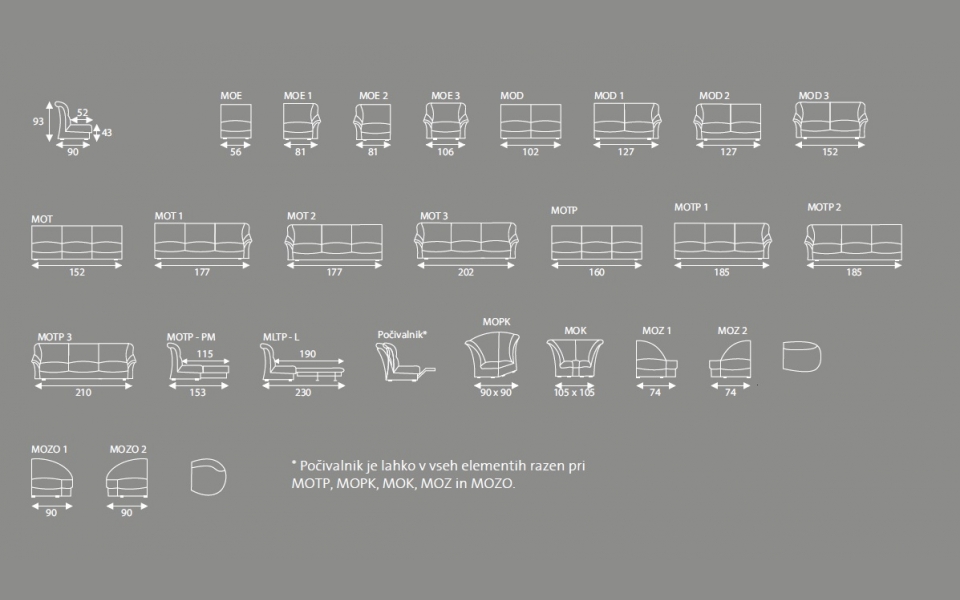 Možnost vgradnje relax mehanizmov (električnih in mehanskih), postelj in predalov.